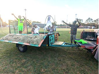 Children dressed in Halloween costumes, accompanied by their parents, ran and played on the field, rode hayrides, and giggled while jumping in an inflatable bouncy house. Ring toss games and food were also available for participants to enjoy.