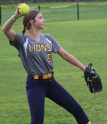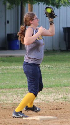 Northside first baseman Caylee Young stretches out to make a catch and record a putout.
