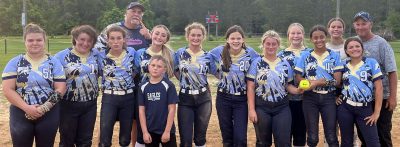 Northside went undefeated in the regular season and swept its Southeastern Christian Conference semifinal series against Hope. Pictured (l-r) are Alliyah Crocker, Kaylea King, Ava Welsh, Coach Todd von Weyhe, Jordan Padelford, Bat Boy Carter Welsh (in front of Padelford), Briley Parrish, Caydance Slayton, Brook Parrish, Emma Calhoun, Briley Parrrish, Gabby Smith, Caylee Young and Coach John Parrish.
