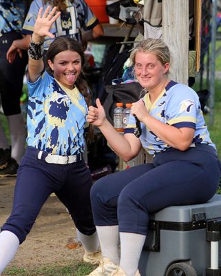 Northside’s Caylee Young (left) and Brook Parrish show that you can play winning ball and still find time to have some fun.