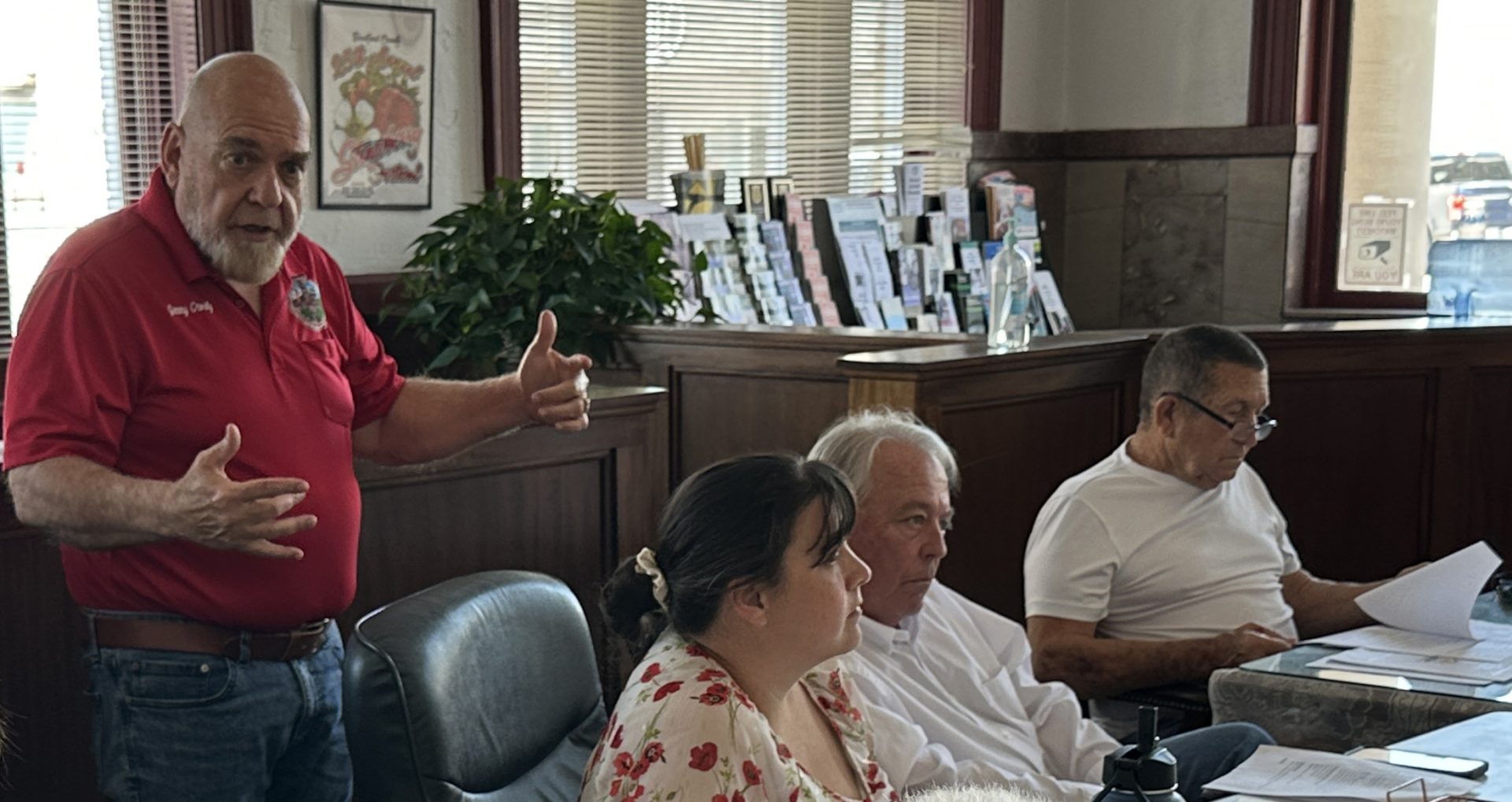 City of Starke Chief Administrative Officer Jimmy Crosby explains to tourist development council members his vision of a sports partnership between the city, county, and TDC. Also pictured are tourist development council members (l-r) Amber Shepherd, Marty Shaw, and Gene Melvin.