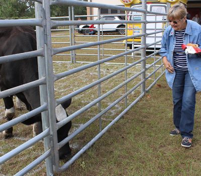 Before enjoying her hot dog, Vivian Chappell pays a visit to Bessie to see how close she is to Chappell’s square. Photo by Cliff Smelley.