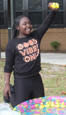 Makynzi Pernell celebrates her luck with a winning duck. Photo by Cliff Smelley.