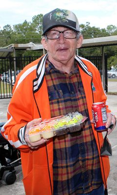 Arthur Sinabian holds a container of cupcakes he won by participating in the cake walk. Photo by Cliff Smelley.