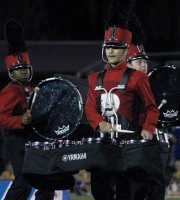 Wyatt Acevedo on quads and (background, l-r) Cana Mitchell and Samantha Appling on bass drums. Photo by Cliff Smelley.