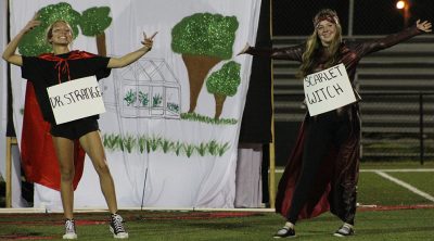 Lily Mercer (left) and Scarlet Reddish portray Dr. Strange and Scarlet Witch in the sophomore skit, which placed fourth in judging. Photo by Cliff Smelley.