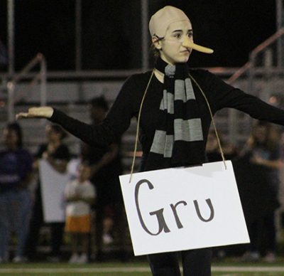 Jaelynn Norman portrays Gru of “Despicable Me” fame in the senior skit. Photo by Cliff Smelley.