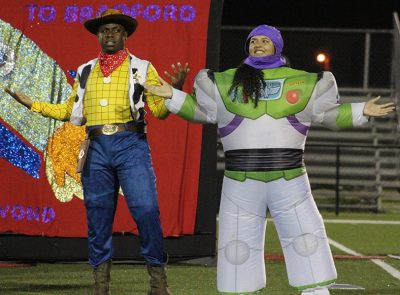 Samuel Williams (left) and Madison Highland portray Woody and Buzz Lightyear in the senior skit. Photo by Cliff Smelley.