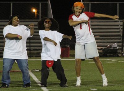 Kaniyah Gilmore, Agape Murungi and Ny’Asia Lopey (l-r) participate in the senior skit’s dance battle.