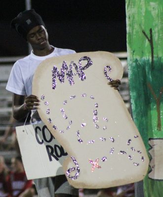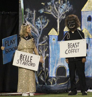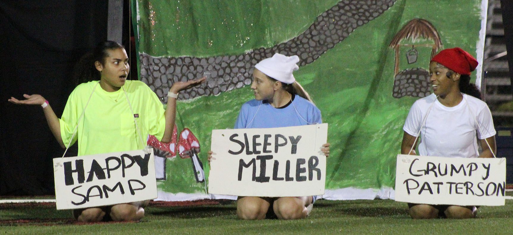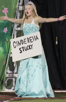 Where’s Coach Rodgers’ playbook? Elaina Smith, Savannah Scott and Jada Clayton (l-r) can’t seem to figure it out as Happy, Sleepy and Grumpy in the freshman skit, which placed third at Bradford High School’s Tornado Whirl homecoming event.Chase Small, who’s playing Coach Rodgers, is attempting to figure out this map as he navigates his way through fairy tale land in the freshman skit.Alex Mauldin offers up a ride as a member of the fairy patrol in the freshman skit.Lily Maust plays number-one Tornadoes fan Cindy Futch, who appears as the fairy godmother in the freshman skit. She agrees to help Coach Rodgers find his playbook, provided she gets free red seats for life.Addyson Griffis plays Cinderella in the freshman skit.Brynlee Sanford (left) and Montrez Aldridge portray Belle and the Beast in the freshman skit.