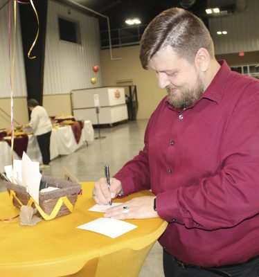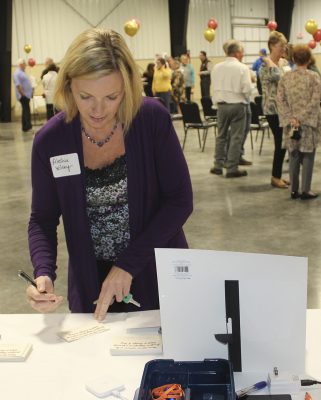 Guests, such as Aleshia Wilsey (pictured), had the chance to put their names on cards, with the names being published in a full-page ad in the Telegraph, which the paper co-sponsored by Johnnie and Melba Johnson, Bob and Carol Milner, James and Bobbie Sue O’Brian, Amanda Seyfang, Pam and Dale Woodruff, Community State Bank, Chrissy Thompson and Downtown Grill, Kiwanis Club of Starke. Photo by Cliff Smelley.