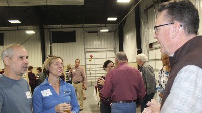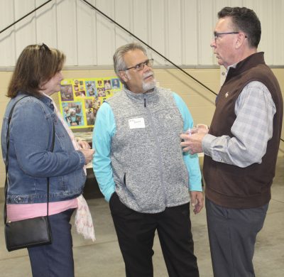 Jennifer Vaughan (far right) chats with Dirk and Lynn Schmidt. Photo by Cliff Smelley.