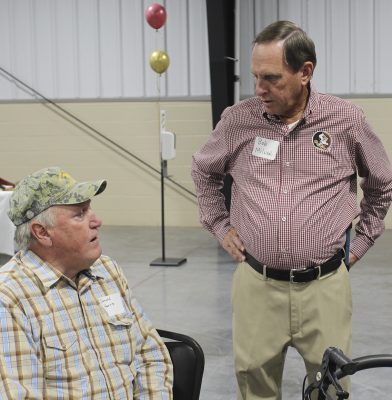 Terry Vaughan (center) visits with James Eison (far left) and Cliff Smelley. Photo by Bob Milner.