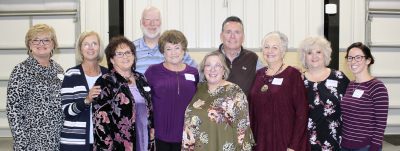 Terry Vaughan, who was a longtime supervisor of elections for Bradford County, is pictured with his wife and some of his former elections colleagues. Pictured (l-r) are Union Supervisor of Elections Debbie Osborne, former Suwannee Supervisor Glenda Williams, former Hamilton Supervisor Laura Dees, Clay Supervisor Chris Chambless, former Lafayette Supervisor Lana O’steen, Jennifer and Terry Vaughan, former Columbia Supervisor Liz Horne, Columbia Supervisor Tomi Brown and Bradford Supervisor Amanda Seyfang. Seyfang worked for years under Vaughan as deputy and assistant supervisor. Photo by Cliff Smelley.