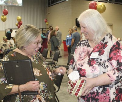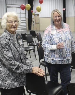 Terry Vaughan (left) visits with Emma Jean Redding. Photo by Cliff Smelley.