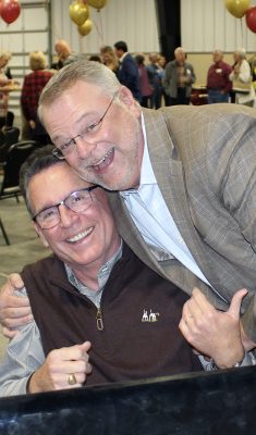 Jeff Oody (right) has some fun with Terry Vaughan while he’s being interviewed by On the Spot with David Rodgers. Photo by Cliff Smelley.