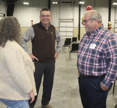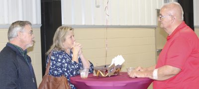 Dale Woodruff (far right) visits with David and Tammie Woodard. Photo by Cliff Smelley.