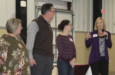 Aleshia Wilsey (far right), who works in Bradford County’s zoning office, speaks during the reception. Also pictured (l-r) are Jennifer and Terry Vaughan and Bradford Supervisor of Elections Amanda Seyfang. Photo by Cliff Smelley.