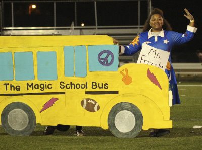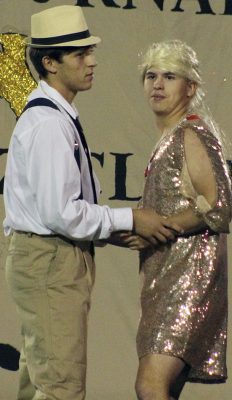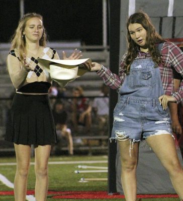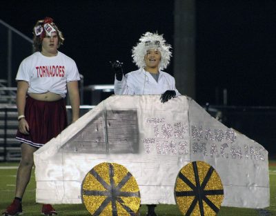 Jordan Thomas (left) and Carolyn Adams play teens from the 1980s in the second-place freshman skit at Tornado Whirl. Photo by Cliff Smelley.Alexandria McFarland (right) is ready to take BHS students back in time in the freshman skit. Cheerleader Dayton Roberts looks a little uneasy about the proposition. Photo by Cliff Smelley.Kaylee Devore (left) and Summer Sutton participate in the freshman skit. Photo by Cliff Smelley.In the freshman skit, BHS students travel back in time to find missing mascot, Turbo. They found him hanging out with a group of cheerleaders from the past: (bottom, l-r) Daniel Macedo-Banda, Jacob Ferguson, Kacen Thomassen, (top, l-r) Landon Rousselle and Liam Maust. Photo by Cliff Smelley.Ms. Frizzle, played by Madison Rhoden, is ready to take BHS students back in time in the junior skit, which placed third at Tornado Whirl. The skit had students searching for Coach Brian Tomlinson and some of the football players, who were zapped back in time. Photo by Cliff Smelley.In the junior skit, Tyler Kite (left) and C.J. McKinney play a couple enjoying a dance at the Tornadoes Jazz Club in the 1940s. Photo by Cliff Smelley.Makayla Moore (far left) and Brianna Justice (far right) play cheerleaders of the past in the junior skit. They’re fighting over 2021 football player Jarrin Alexander, played by Masey Padgett. Photo by Cliff Smelley.Ashley Brady (left) and Takeirra Bakken can’t believe their eyes during a portion of the junior skit that references the Sir Mix-A-Lot video for “Baby Got Back.” Photo by Cliff Smelley.Alahna Faulkner (left) and Hannah McFarland show off their muscles in the senior skit, which placed fourth at Tornado Whirl. Photo by Cliff Smelley.Zachary Clayton hams it up as a cheerleader in the senior skit. Photo by Cliff Smelley.Aniyah Carroll (left) and Ariana Covington remove the winning play from the BHS time capsule in the senior skit. Students traveled back in time to find the winning play so that the Tornadoes could win their Homecoming 2021 game. Photo by Cliff Smelley.Coach Brian Tomlinson, portrayed by Mikayla Cooper, furiously copies the winning play in the senior skit. Photo by Cliff Smelley.