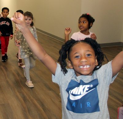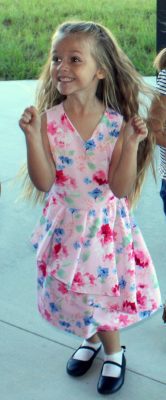 Nova Fiber can’t contain her excitment as she waits to go inside. Photo by Cliff Smelley.