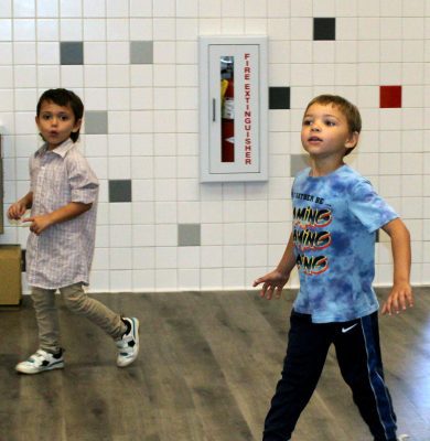 Bemjamin McKenna and Amir Lewis check out the cafetorium. Photo by Cliff Smelley.