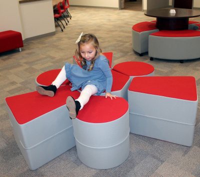 Kentzie Knipp has fun exploring the media center. Photo by Cliff Smelley.