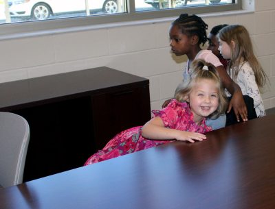 Sierra Croy, along with A’Maria Blocker and McKenna Drawdy, have fun checking out one of the administration offices. Photo by Cliff Smelley.