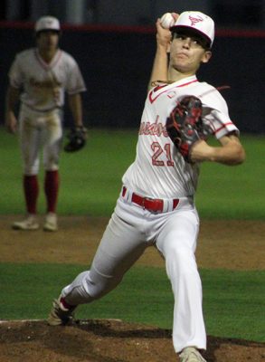 Cason Pilcher went the distance on the mound, striking out a personal-record 16 batters in the Bradford High School baseball team’s 5-0 win over visiting Parker on Feb. 29.