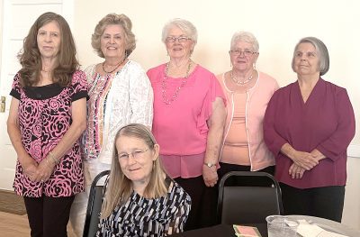 Newly sworn in Auxiliary Officers: (front row) Charlotte Williams (First VP); (back): Loretta Edwards (2nd VP), Linda Johns (President), Virginia Linzy (Recording Secretary), Gertrude Griffis (Correspondence Secretary), and Linda Hildebran (Treasurer).
