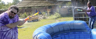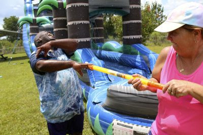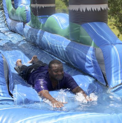 Purple is the chosen color as it represents royalty. Consumers do indeed receive the royal treatment on Purple Day — a day devoted to fun and games. This year, an inflatable water slide was available as opposed to the usual dunk tank, while a lunch of grilled hamburgers and hot dogs was served, followed by watermelon and cookies for dessert.