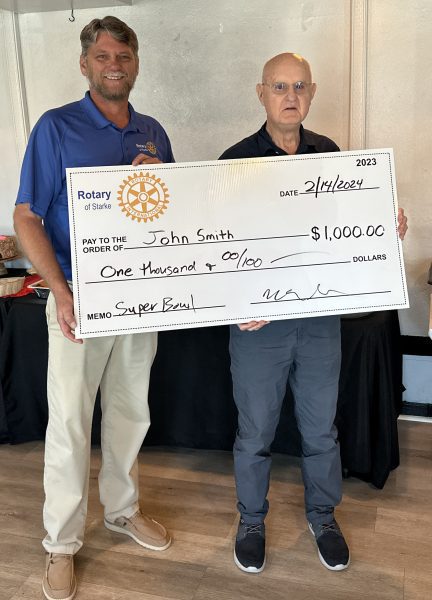 John Smith donated his $1,000 winnings to the Rotary Foundation in the name of Starke Rotary Club members.
