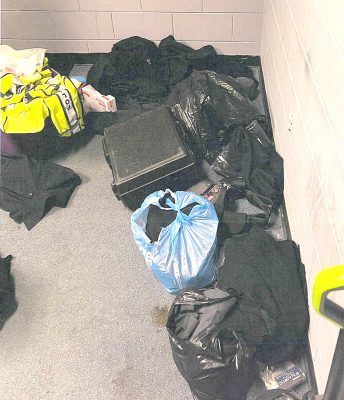 —an open evidence logbook in a back room open to the last entry on Feb. 10 that simply read “Drugs.”