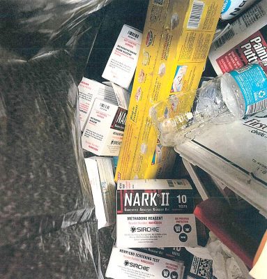 —an open evidence logbook in a back room open to the last entry on Feb. 10 that simply read “Drugs.”