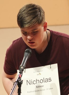 —Bradford Middle: Jade Brown (winner), Bradylyn Johnson (runner-up), Nicholas Salazar (third place).
