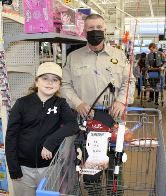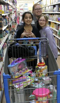 Lawtey Elementary student Scarlett Puff and Lawtey Correctional Institution’s Mark Spittle are having a fun time shopping. Photo by Cliff Smelley.