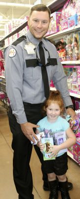 Lawtey Elementary’s Delanie Kelly (right) is enjoying her time with Starke Police Department’s Michael Gillick at the 17th annual SPD Shop With a Cop event. Photo by Cliff Smelley.