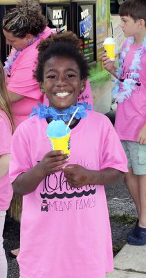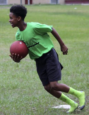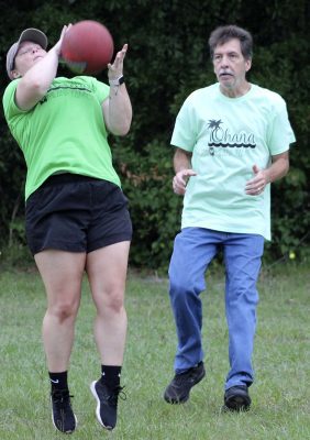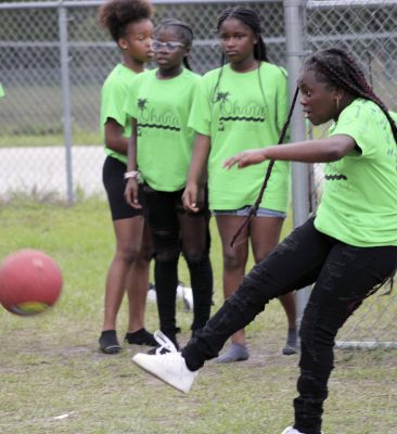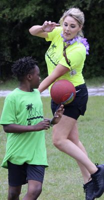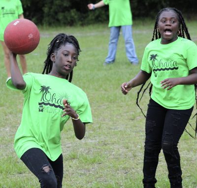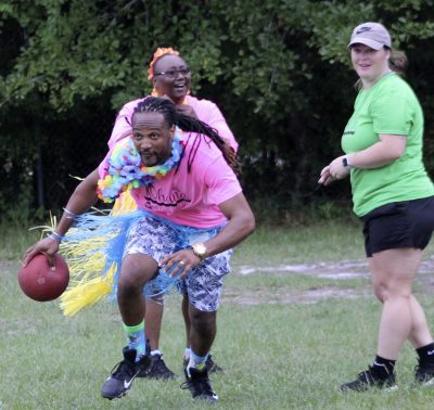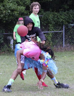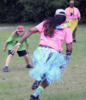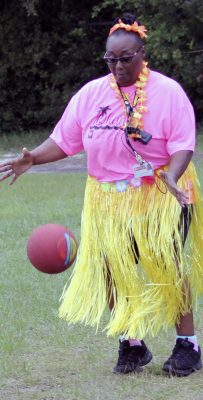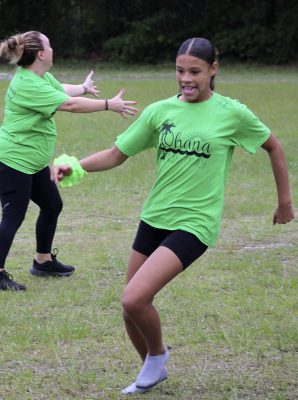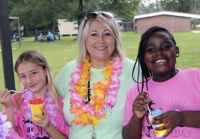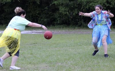 Gillian Sheppard (right) flexes after safely reaching first base during a kickball game between faculty and students on the last day of school at Starke’s Southside Elementary. Students A’moni Williams and Alliyah Simmons are also pictured. Many of the faculty members and students wore leis and grass skirts on what was a luau-themed day. Faculty and students also wore shirts that read: “Ohana means family.” Photo by Cliff Smelley.Logan Lewis (left) prepares to catch the ball as Conner Daly looks on. Photo by Cliff Smelley.Emily Coston (right) tries to avoid getting hit by a ball. Student Robert Bellamy is also pictured. Photo by Cliff Smelley.Edrick Hamilton prepares to try to get a student out as Tonjala Tyson and Leanna Norman (l-r) look on from the background. Photo by Cliff Smelley.Raekwon Givens (right) catches the ball for an out as Journey Reed looks on. Photo by Cliff Smelley.That’s an out for the student team as Thomas Borland hits Edrick Hamilton with the ball. Jayden Roberson and Braxton Tetstone are also picturedin the background. Photo by Cliff Smelley.Paraprofessional Jaquan Bryant (right) has his sights on recording an out as Brody Bell runs to second base. Photo by Cliff Smelley.Principal Cassie Melvin kicks her way onto base. Photo by Cliff Smelley.Ashariyah Williams (left) prepares to make a throw. Ameriyah Pittman is also pictured. Photo by Cliff Smelley.Tonjala Tyson attempts to make a defensive play. Photo by Cliff Smelley.Braxton Tetstone (left) calculates which way he should move in order to avoid being put out by Behavior Resource Teacher Edrick Hamilton. Photo by Cliff Smelley.Ameriyah Pittman takes her turn to kick. Pictured in the background (l-r) are Sa’niyah Aaron, Harmony Stokes and Mauriya Hankerson. Photo by Cliff Smelley.Leanna Norman (left) gets a handle on a kicked ball. Doug Samons is also pictured. Photo by Cliff Smelley.Journey Reed is happy after making a defensive play. Photo by Cliff Smelley.Gillian Sheppard (right) looks to be having a panic attack while watching Audrey Murphy try to corral the ball. Photo by Cliff Smelley.Aubrianna Thomas makes her way to third base. Photo by Cliff Smelley.Ja’Kayden Bynum enjoys a treat, courtesy of Kona Ice. Photo by Cliff Smelley.Students Isabel Barth and Alani Jenkins hang out with Dana Bell while enjoying their Kona Ice treats. Photo by Cliff Smelley.