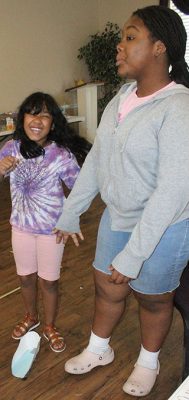 Hamilton said the children, who are entering second-eighth grades, participated in an activity in which they stood in a circle and passed items to the person to the right or left of them. The children, who were wearing name tags, had to say their name and then the name of who they were passing the object to. After having done that a couple of times, then the order was changed, forcing them to pass the objects to different people and learn different names. Hamilton said the goal was for the children to talk to each other. If they didn’t how to pronounce a name, they could ask. If they heard a mispronunciation of their name, they could correct it.