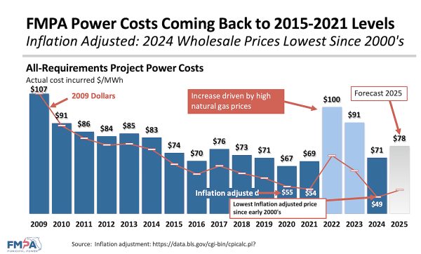 “As a result of measures FMPA has taken to stabilize pricing, our current rates are near the same level as 2015 even considering inflation,” Redding said.
