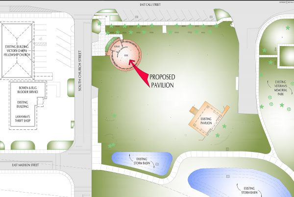 Stressing elaborated on the amphitheater’s key features, which include a large stage with storage space, a handicap-accessible ramp, and a stairway on the opposite side. The design also features a back buffer of landscaping to add visual appeal. The amphitheater could be used for performances and public events like outdoor movie nights, with a motorized screen that can drop down from the back of the stage.