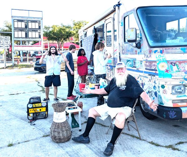 His most recent stop? Starke, Florida — a place he’d never visited before but felt called to after spotting it on the map. “I came up from Brooksville and took 301 and said ‘well, this looks like a good spot to set up,’” he said.