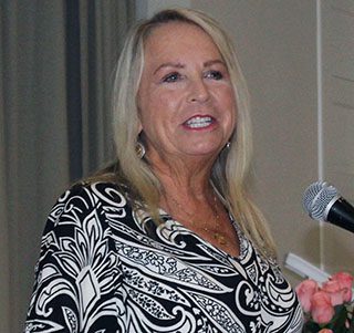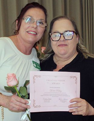 In presenting Lorie Riley with a Creative Vision Award, Barnes described Riley as “very creative” and noted how she, as a new club member, co-chaired the arts and culture committee and assisted with the production and sound for the club’s “Drinking Habits” play.