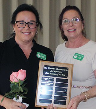 Woman’s Club of Starke President Sheila Barnes presented awards to several members at the club’s May 14 meeting, which also included the installation of officers (see related post).