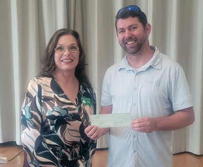 Club President Sheila Barnes spoke of the club surpassing $4,000 in fundraising before presenting a $1,000 donation to Arc of Bradford Executive Director John Williams. The Arc serves those with mental and developmental disabilities in five counties (Bradford, Union, Alachua, Clay and Putnam), dedicated to treating them with dignity, empowering them to choose and realize their own goals and promoting their strengths through education and advocacy.