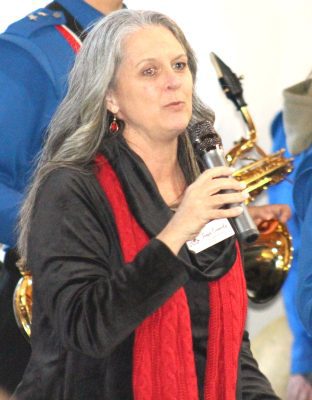 Park of the Palms Assisted Living Facility Administrator Tanza Conneely tells the crowd that the presentation was originally scheduled for outside, “but then the cold weather was rolling in, so we moved it inside. I think it’s going to work out very well.”