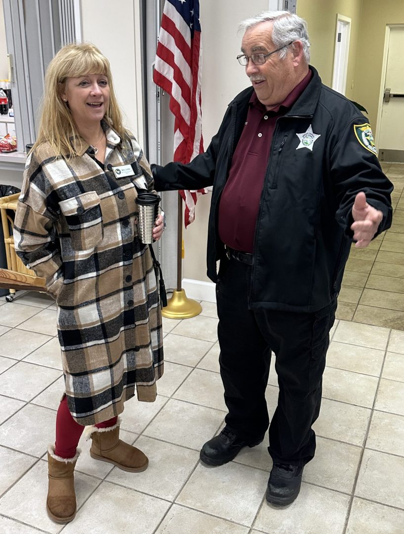Clay County Commissioner Betsy Condon and Clay County Sheriff’s Detective Gary Wintersiten at a combined meeting of the Sheriff’s Net Town Hall and the Clay Chamber’s Lake Region Prosperity Partners.