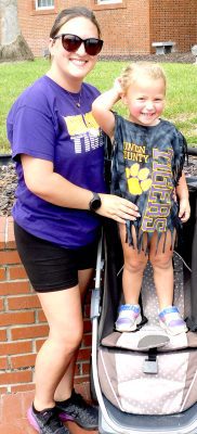 Mason Fassett and Grace Newsome then took over announcing duties, just in time to introduce the members and coaches of the varsity and junior varsity volleyball teams. This was followed by the senior class skit, with the music genre Hip Hop as the theme. The UCHS and LBMS golf teams and their coaches then took to the field to be introduced. The UCHS swim team then made an appearance, along with Coach/Union County Sheriff Brad Whitehead. Next up was the freshman class skit, with the musical genre being Rock and Roll. The Allstars Twirling Academy then made their way to the field. Several groups performed and finished with a dazzling display of twirling fire batons. Newsome then left the announcer’s booth to participate in the junior skit and was replaced by Student Body President Jewell Dekle. The junior class skit was then presented with the Country music genre.