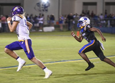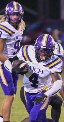 Rayvon Durant carries the ball as part of a 302-yard, two-touchdown night in the Tigers’ 45-0 win. Photo by Jadee O’Steen.