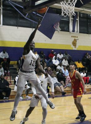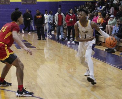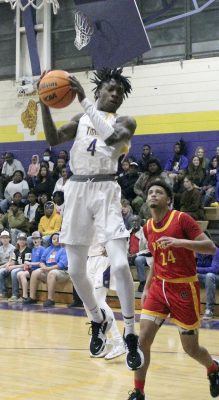 Johnte’ Nichols (left) dribbles into the lane. Photo by Cliff Smelley.