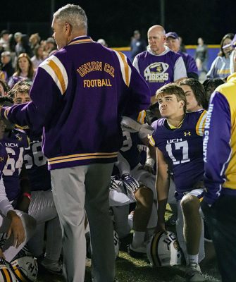 The Celtics returned Whitehead’s kickoff, with Whitehead making the tackle at the Trinity 45-yard line. Wyatt Lucas received a handoff and picked up decent yardage, setting up second-and-4. Union’s Alec McClellon made a tackle on the next play, but the Celtics got enough yards for a first down. After an incompletion, Schofield was sacked on second down by Klein and Ashton Newsom. Trinity would later go for it on fourth down, with a Celtics receiver coming down with a pass in the end zone for a touchdown with less than a minute to go in the first half. The extra-point kick was no good, making the score 32-6.